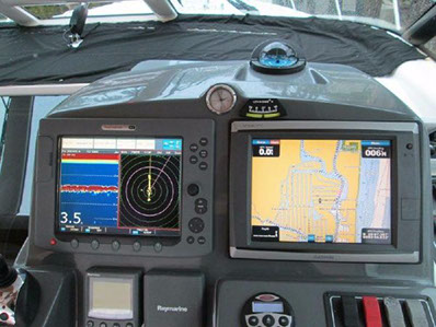 - Full electronics package to include: Raymarine E 120 MFD w/ open array radar, VHF 240, ST 8002 AutoPilot, and Garmin 7212